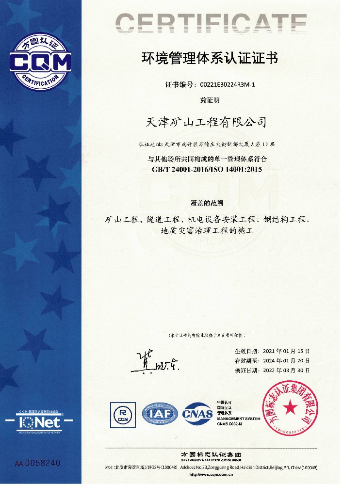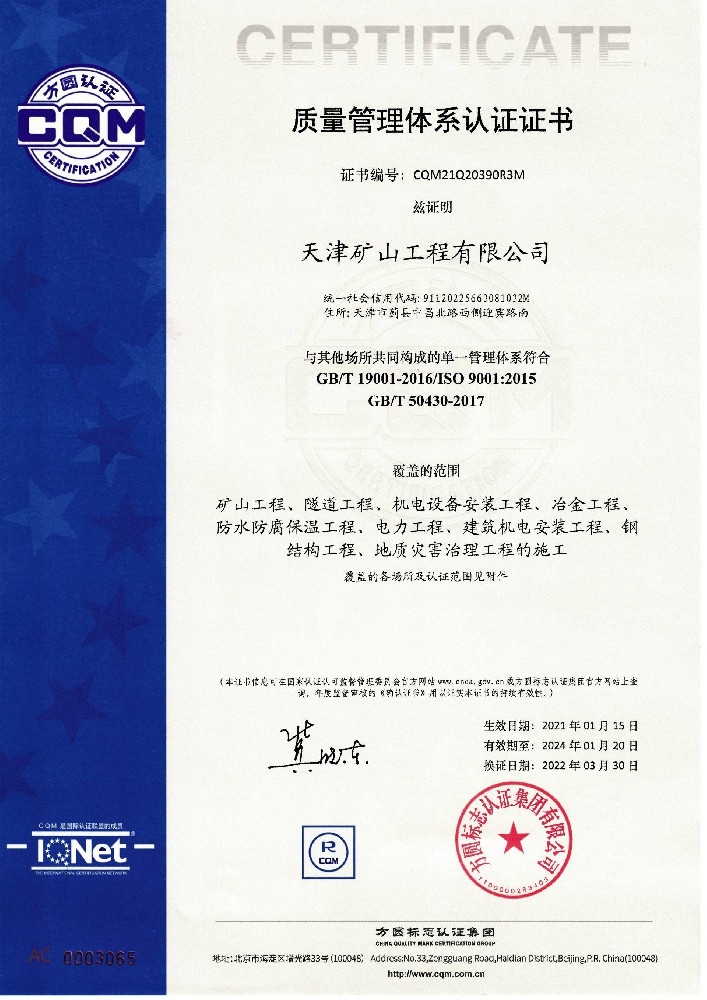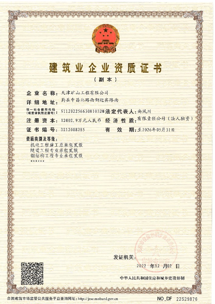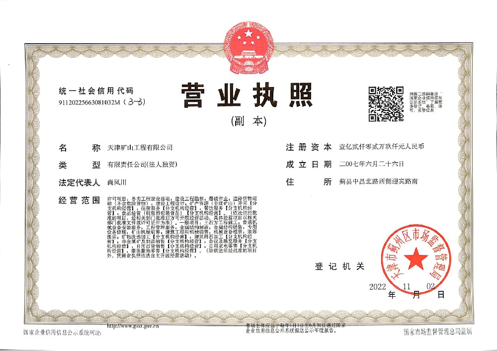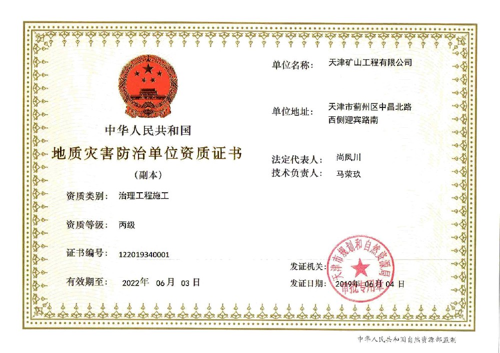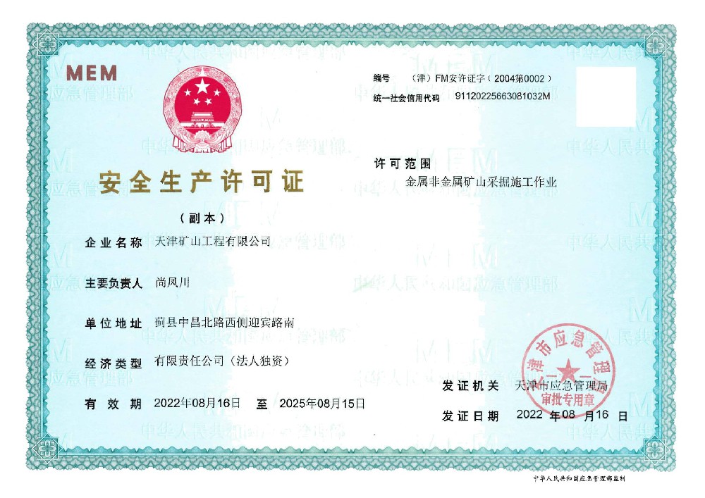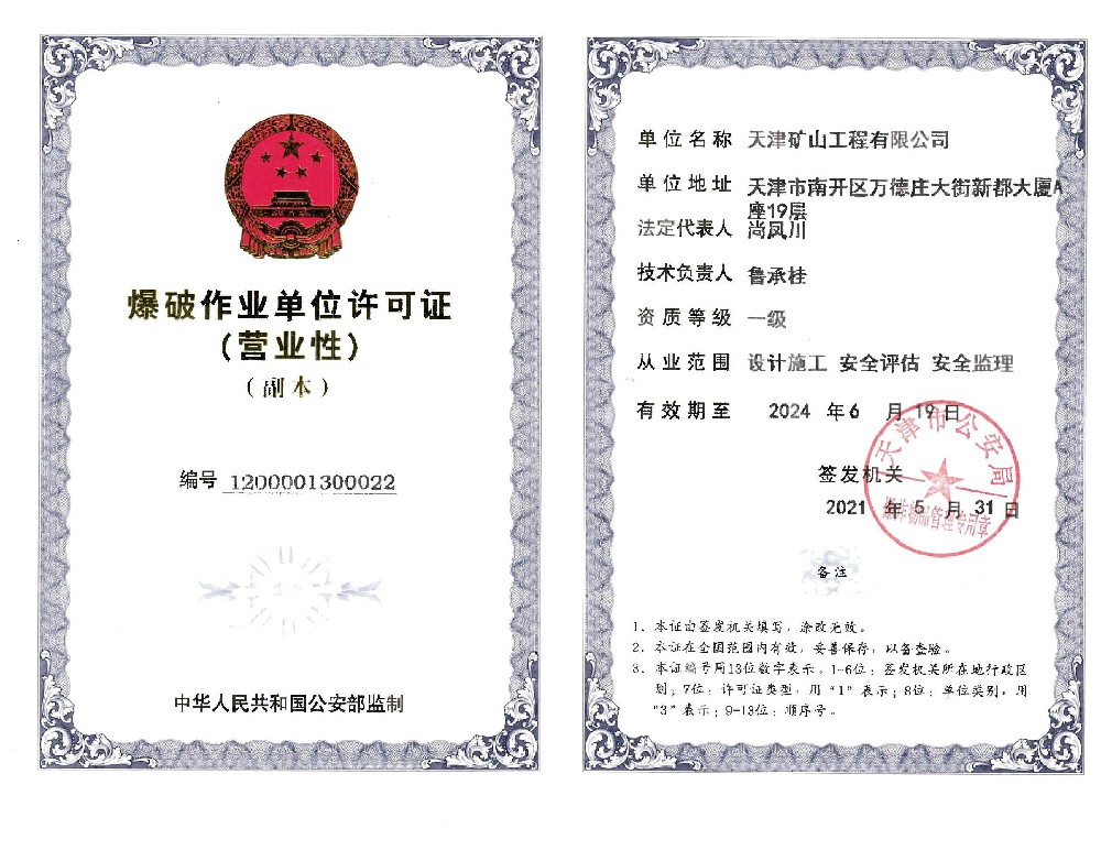天津礦山工程有限公司(以下簡稱公司)始建于1965年,隸屬中國建材集團有限公司,是從事礦山總承包、礦山開采運營、礦山設(shè)計與咨詢、土石方爆破、生態(tài)恢復(fù)治理、鋼結(jié)構(gòu)制作安裝、機電設(shè)備安裝以及工程測量的專業(yè)化礦山施工企業(yè)和礦山開采運營總承包服務(wù)商。具備礦山總承包和爆破雙一級資質(zhì)。 公司始建于1965年,總部位于天津市···